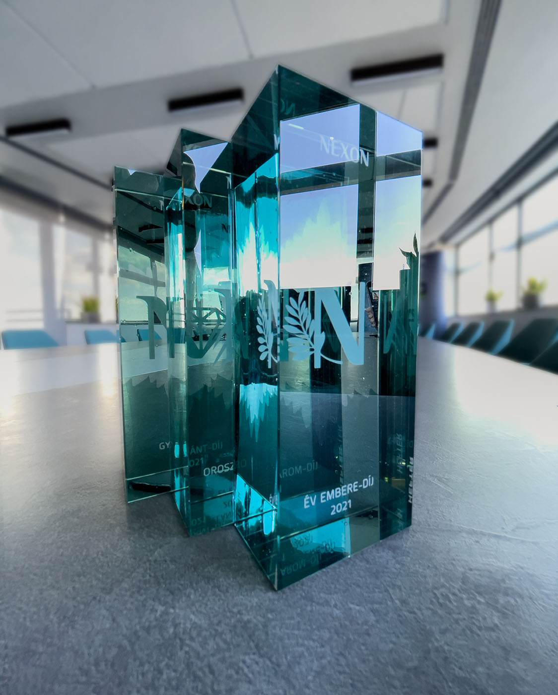 Egyedi díjak és üvegdíjak készítése kézi igényességgel a tervezéstől a díszdobozig.