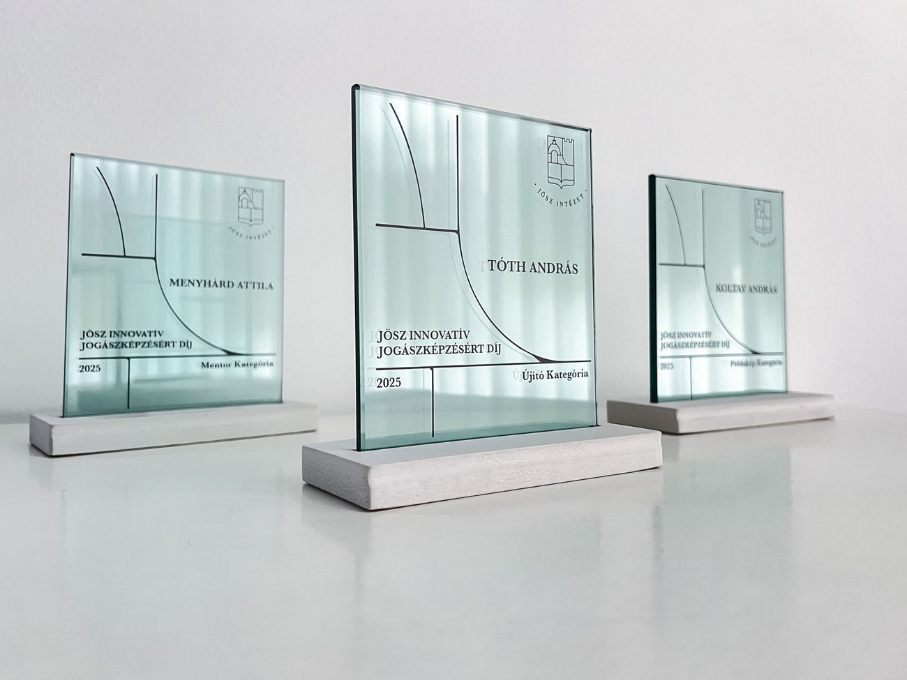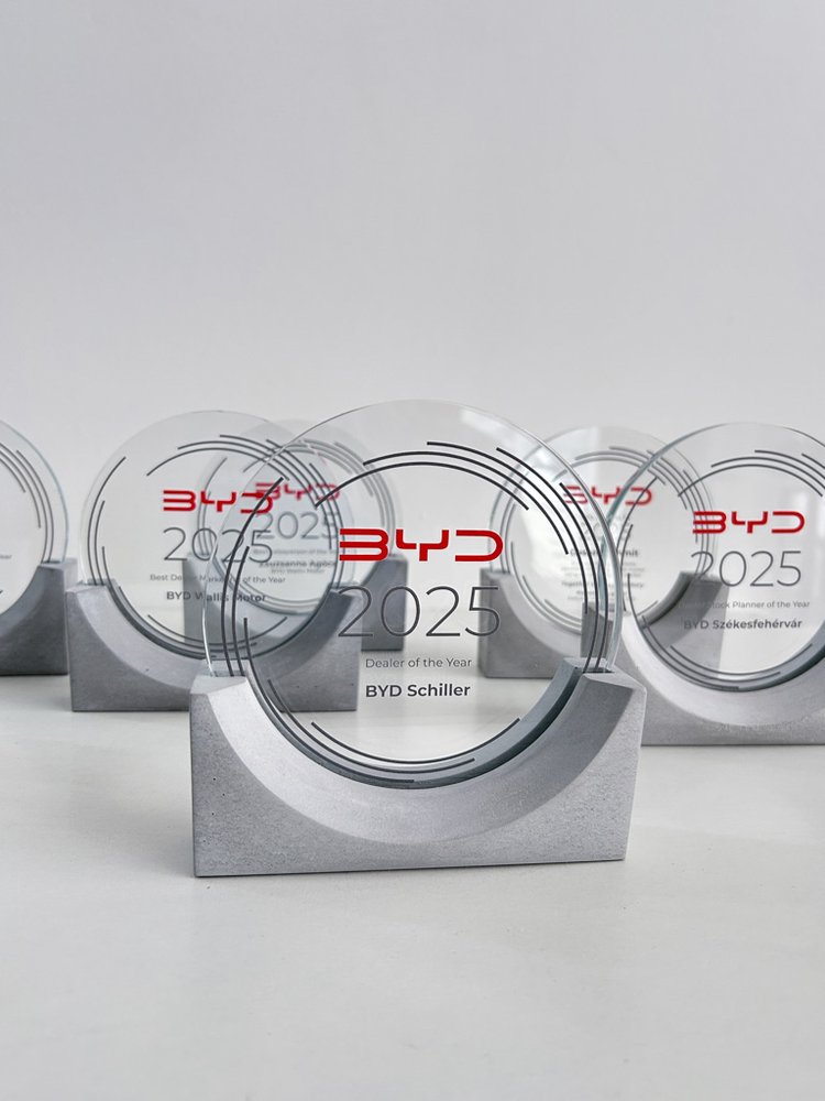 A díj anyaga: magas tisztaságú üveg és dekorbeton.