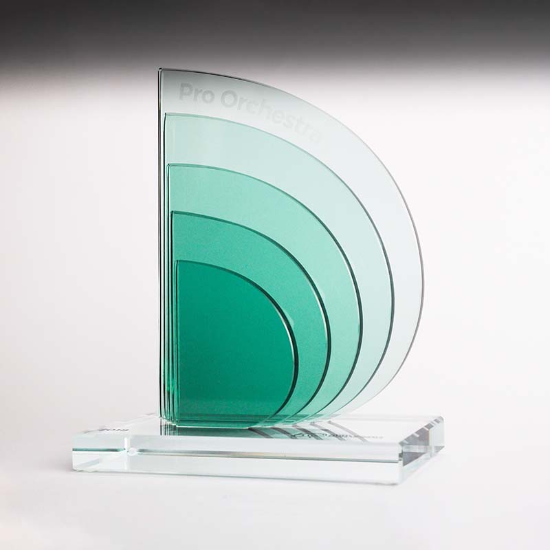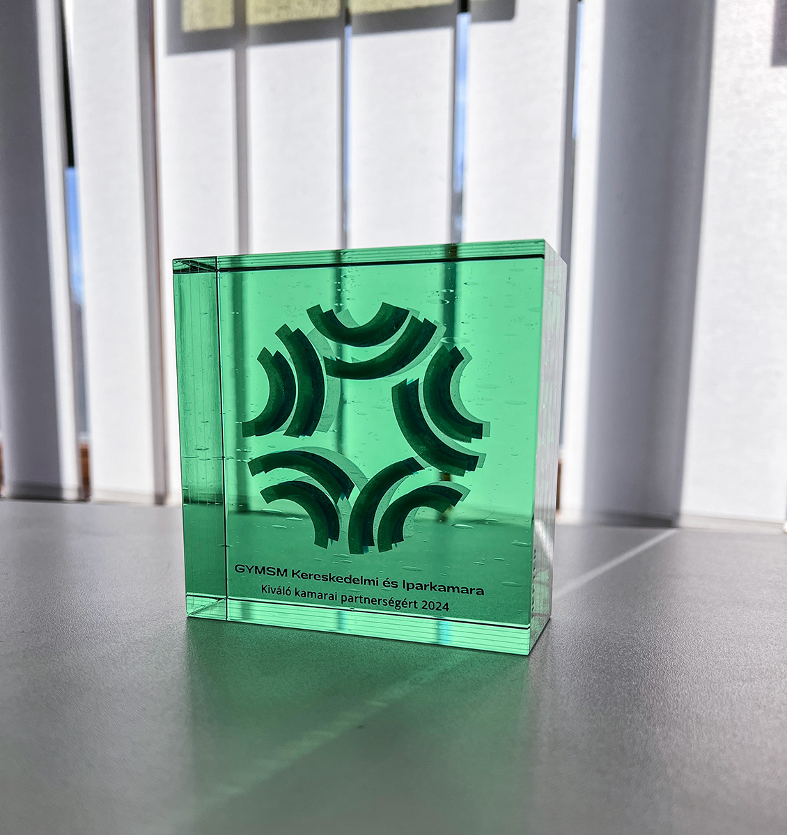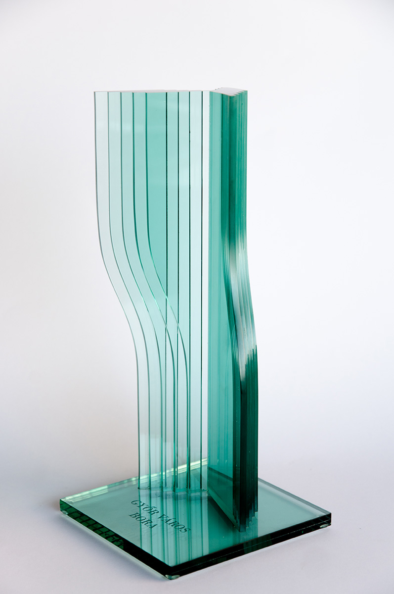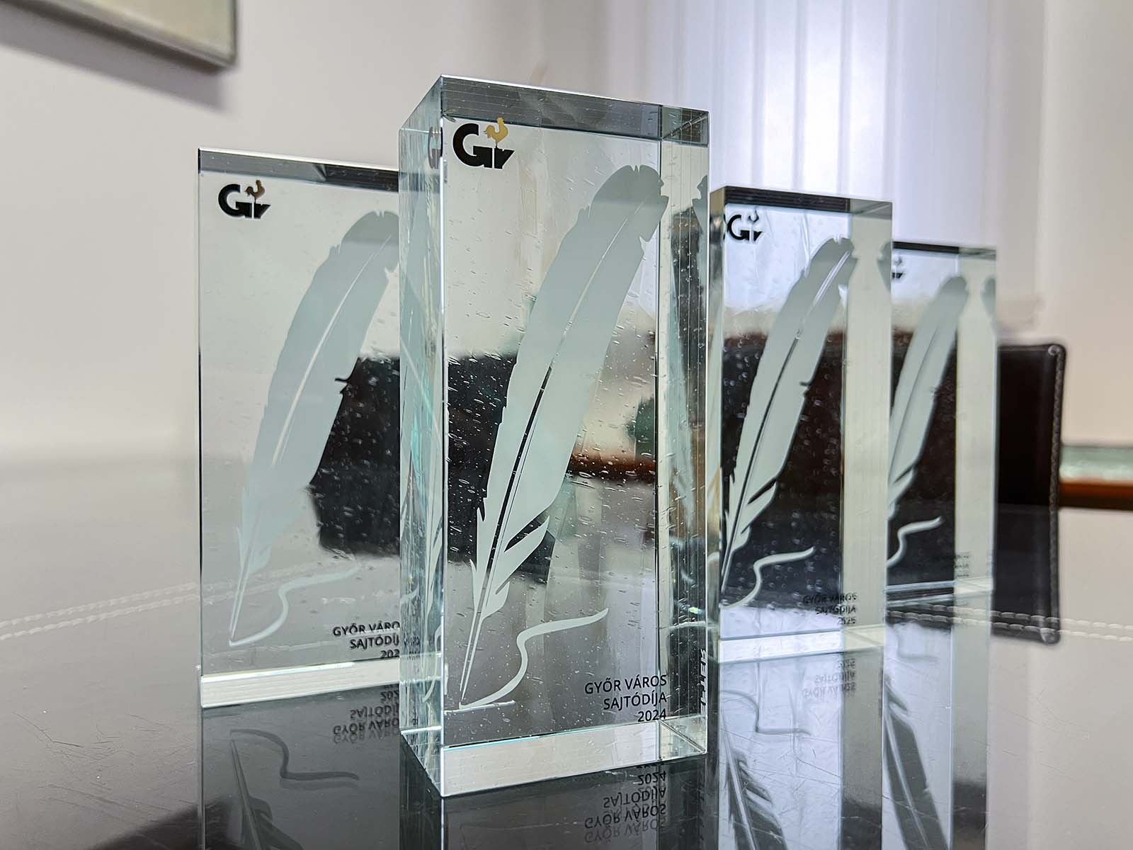 Győr Város felkérésére készítettük ezt a különleges díjat, amely rétegragasztott, élmegmunkált üveglemeze…
